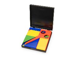 Яркий набор канцелярских принадлежностей поможет разнообразить течение офисных будней! Прекрасный подарок молодым и креативным специалистам. В компактном футляре собраны такие необходимые принадлежности как рулетка на 1 м, точилка, ножницы, шариковая ручка, линейка с лупой, держатель, скрепки, кнопки, бумажный блок.