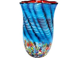 Замечательная ваза выполненная в морском стиле непременно понравится ценителям необычных интерьерных вещей. Ваза сделана из разноцветного муранового стекла насыщенных оттенков. Ваза красиво упакована в подарочный футляр-сундучок.