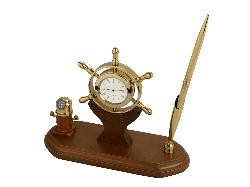 Настольный прибор «У руля»: часы, термометр, компас, ручка шариковая. Роскошный подарок для руководителей туристических агентств, а также капитану морского судна. Прибор позволит организовать место на рабочем столе и сделать акцент в кабинете.