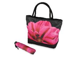Подарочный набор «Георгин» предназначен для стильных женщин. Красивый и компактный зонт, дополняющий сумку с таким же рисунком, прекрасно завершат самый женственный образ.