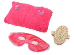 Прекрасный подарок женщине – СПА-набор, в которых входит эффективный массажер для тела, подушка под шею на присосках и гелевая маска для глаз и век. Набор идет в удобном водонепроницаемом мешке, который можно персонализировать.