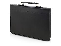 Строгая папка для документов Saunder будет отличным подарком для делового человека. Формат А4, скоросшиватель на кольцах – папка прекрасно подойдет для переноски текущих документов. Карманы для телефона, визиток и заметок, блокнот, держатель для ручки. Папка надежно застегивается на молнию, а чтобы ее было удобно носить – сверху расположена ручка. На поверхность из плотного кожзаменителя можно нанести шильд.
