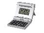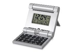 Калькулятор из серебристого пластика удобно раскладывается и компактно складывается. Помимо своей прямой функции калькулятор снабжен многофункциональным цифровым табло, показывающим «мировое время», дату, календарную сетку на текущий месяц. Сюда же включены функции таймера и будильника.