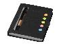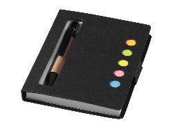 Набор цветных стикеров с шариковой ручкой, а также блок отрывных листков. Эффектный аксессуар для офиса, отличный промо-сувенир для продвижения дизайнерской студии или иного креативного проекта. На обложку из уплотненного картона возможно нанесение логотипа вашей компании.