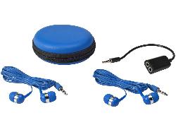 Наушники Sound off и сплиттер с чехлом. Отличный аксессуар для путешествий! Набор включает два комплекта наушников, музыкальный сплиттер и чехол из ЭВА. Позволяет двум людям одновременно слушать музыку с одного аудиоустройства. Подходят для использования со смартфонами, планшетами и всеми музыкальными плеерами с 3,5 мм аудиоразъемом. Длина провода: 110 см. АБС-пластик и чехол из ЭВА.