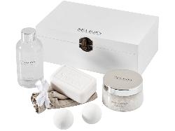 Банный набор Winston. Этот эксклюзивный набор включает банные принадлежности с мягким ароматом белого хлопка. Набор включает гель для душа 150 мл, соль для ванн 140 г, 2 пенящихся шарика и 100 г мыла в красивом хлопковом чехле. Предлагается в деревянной подарочной коробке Seasons.