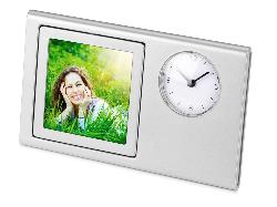 Настольные часы снабжены фоторамкой 6х6 см и магнитной доской на обороте, благодаря которой часы можно крепить к любой вертикальной металлической поверхности. Магнитную область можно также использовать в качестве держателя для канцелярских скрепок. Корпус часов имеет большую площадь для нанесения изображения.