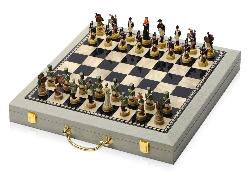 Превосходный подарок для любителей игры в шахматы. Оригинальные, коллекционные шахматы выполнены в виде солдат советских (белые) и немецких (черные) войск. В комплекте с шахматами прилагается доска-кейс для игры и хранения фигурок.
