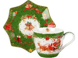 Отличный новогодний подарок включает в себя чашку и блюдце. Набор выполнен из тонкого фарфора и задекорирован в новогодней тематике. Подарочная коробка позволит торжественно вручить подарок. Расцветки в ассортименте.