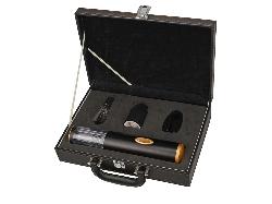 Необычный и практичный подарок для успешных мужчин. Набор аксессуаров для вина включает в себя автоматический штопор, нож для фольги, воронку для розлива и пробку, упакованные в компактный футляр-кейс.