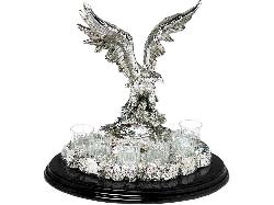 Великолепный настольный набор для водки с фигурой орла из литьевого мрамора, расположенной на деревянной подставке. Набор включает в себя 6 стопок из высококачественного стекла. Отличный подарок для партнеров по бизнесу.