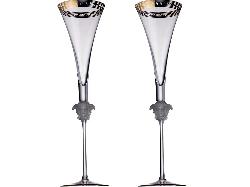 Утонченная форма и интересные детали подчеркивают праздничную тематику набора. В комплект входят два бокала для шампанского, выполненные из прозрачного хрусталя. Бокалы задекорированы древнегреческим золотистым орнаментом и изображением мифического существа – медузы Горгоны.