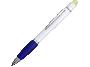 Пластиковая шариковая ручка имеет прорезиненную область, предотвращающую скольжение и обеспечивающую комфорт во время длительного использования. Ручка имеет узкий носик и тонкий стержень, а на противоположном ее конце имеется восковый маркер с колпачком, которым очень удобно делать пометки.