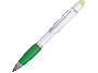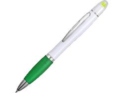 Пластиковая шариковая ручка имеет прорезиненную область, предотвращающую скольжение и обеспечивающую комфорт во время длительного использования. Ручка имеет узкий носик и тонкий стержень, а на противоположном ее конце имеется восковый маркер с колпачком, которым очень удобно делать пометки.