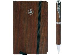 Нейтральный и очень приятный подарок для делового человека. В набор "Larbey" входят раскрашенные под дерево записная книжка, формат А6, эластичная застежка, 80 листов (80г) линованной бумаги и шариковая ручка с поворотным механизмом. Кармашек на задней стенке для визиток или заметок. Набор упакован в красивую подарочную коробку кремового цвета.