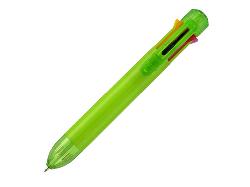 Многостержневая шариковая ручка с кнопочным механизмом и стержнями 8 различных цветов: черным, синим, зеленым, оранжевым, розовым, фиолетовым, красным и желтым.